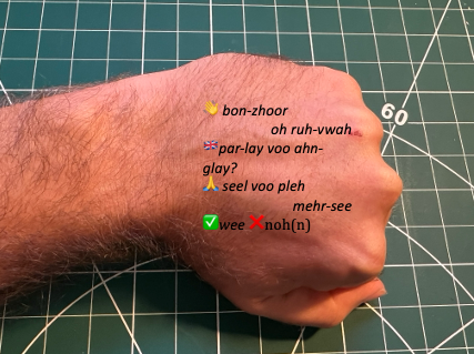 Neither my brother or I are linguistically gifted and on a trip to Budapest we found that we had trouble remembering even how to say “hello” (szia!), “please” (kérem), and “thank you” (köszönöm) in Hungarian. To address this my brother wrote these most basic words on the back of his hand and made a show of looking at his hand then to the person he wanted to greet. It was funny and great for making new friends.